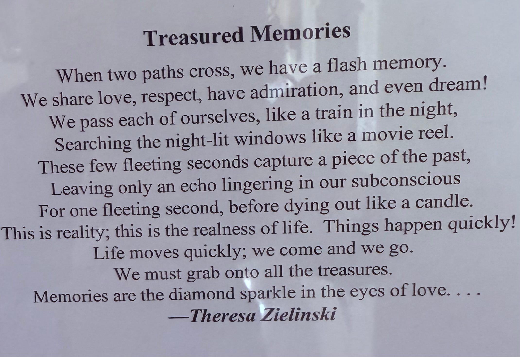 Years ago, she wrote a poem titled “Treasured Memories.” It hung in their living room for decades as a quiet reminder that life moves quickly. The real treasures are not what we accumulate. They are who we become and who we love along the way.