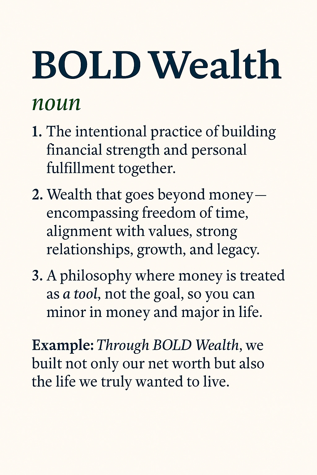 Over the years, those small shifts compounded. We tend to overestimate what we can do in a month or a year, but underestimate what we can do through consistent habits for years. Through these new habits, I discovered a life of BOLD Wealth.